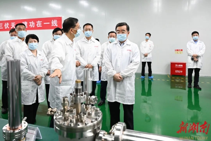 9月16日,湖南省委书记、省人大常委会主任张庆伟赴中国电科48所调研经营发展、研发制造、科技创新等情况。他强调,要深入学习贯彻习近平总书记对湖南重要讲话重要指示批示精神,全面落实“三高四新”战略定位和使命任务,抢抓机遇、只争朝夕,提升产业核心竞争力,为实现高水平科技自立自强贡献更大力量,以实际行动迎接党的二十大胜利召开。
